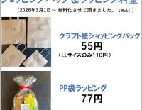 ショッピングバッグ、ラッピング有料化のご案内