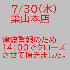 葉山本店14:00でクローズ