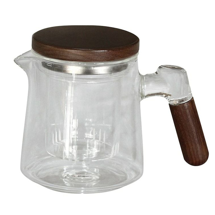 こちらもハンドルにウォールナットを使用。ガラス製の茶こしは同様にスリット入りです。