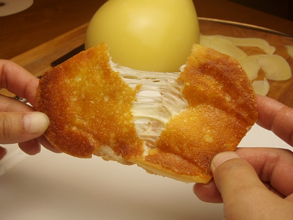 しかしこの通り。 表面がカリッとクリスピー、中がとろけるチーズの絶品・焼きカチョカバロ。通常のチーズよりも弾力がある独特の食感です。